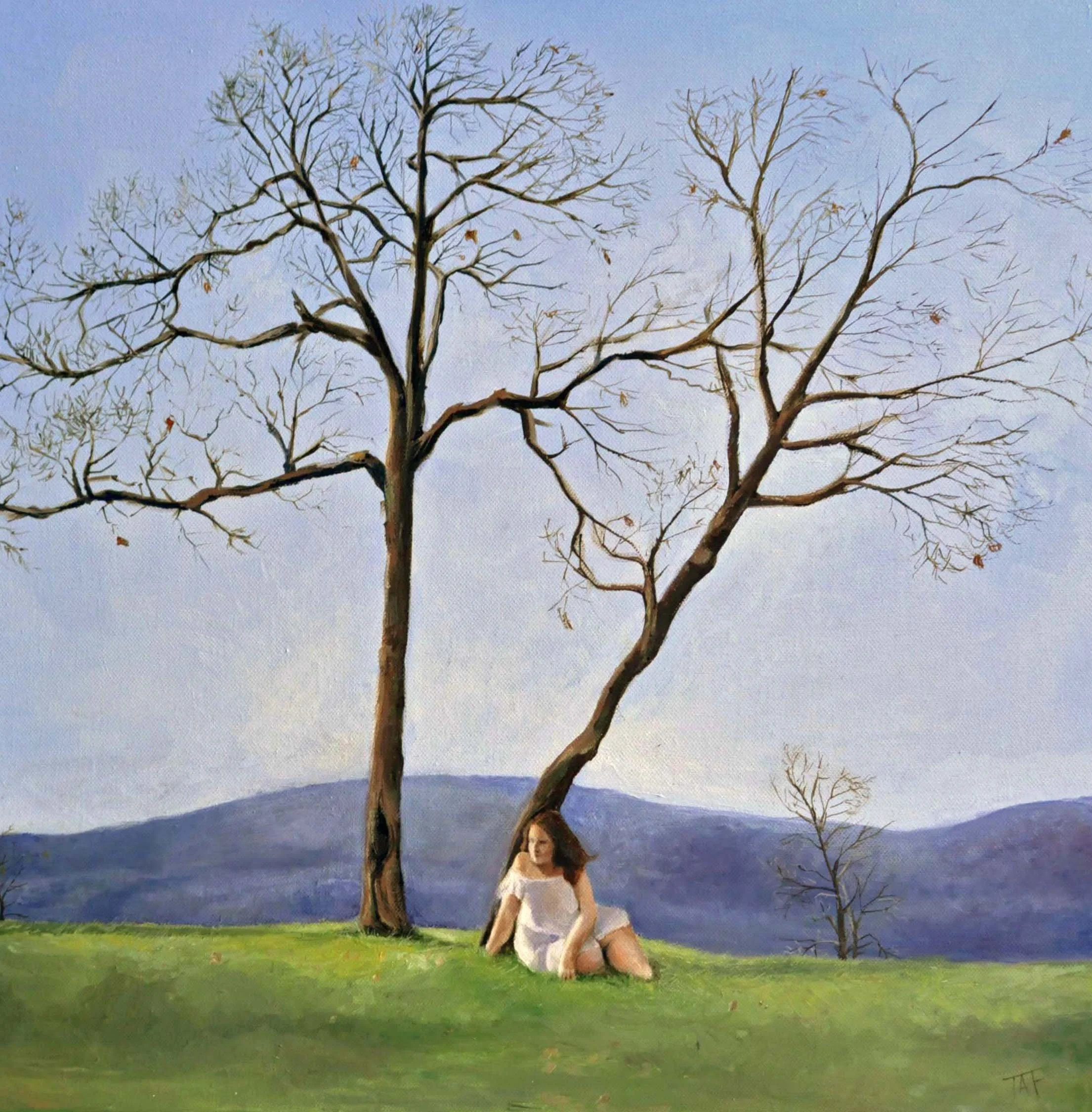 The image was not conceived as a self-portrait in the traditional sense. The original photographs were taken as part of a larger set (an exploration of figure, setting, and composition, taken by Stephen Parberry) where I was the available subject. The painting itself was produced during a period focused on exploring medium and first beginning to explore self in relation to image. It exists somewhere between representation and distance, an early instance of placing myself within an image without yet having the capacity to fully recognize or interpret that presence.